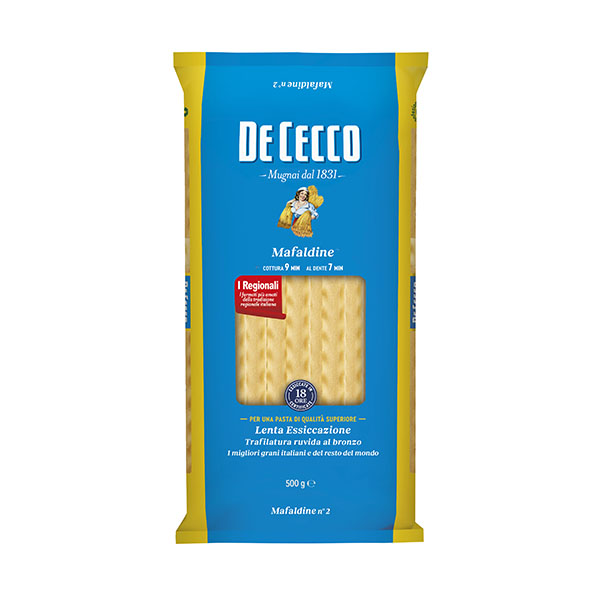 ShopDE CECCOMALFALDINE NO. 2MALFALDINE NO. 2 MALFALDINE NO. 2 LONG, RIBBON SHAPE WITH CURLED EDGES Product Code: DPDC002 Origin: Abruzzo, Italy Pack Size Options: 24 x 500g Unit Packaging Type: Packet / Box Suggestions: ** HUDDERSFIELD ONLY ** 1 Category DE CECCO ✻ Related products EGG LASAGNE Read more EGG PAPPARDELLE – DE CECCO Read more SPAGHETTI Read more EGG TAGLIATELLE Read more